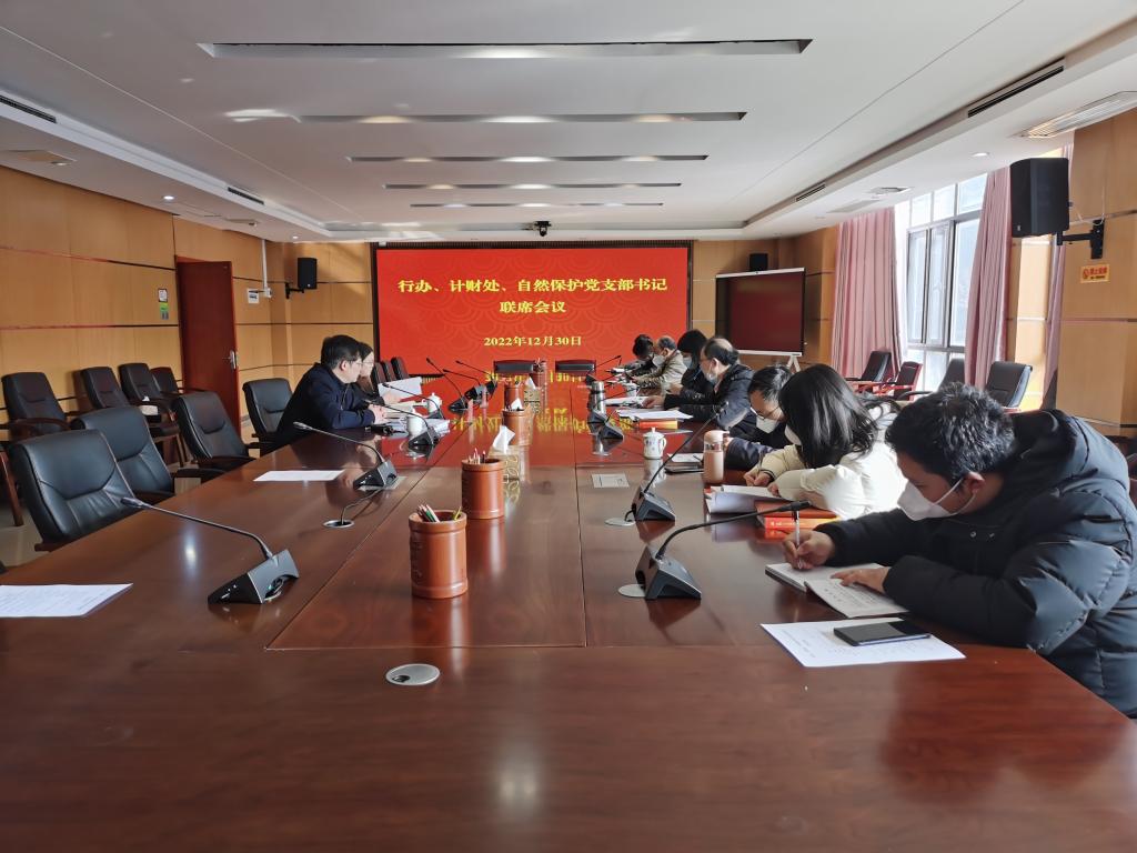 12月30日下午,院党委副书记、院长杨杰芳主持召开行办、计财处、自然保护党支部书记联席会议,三个党支部支委、支部班子成员参加会议。