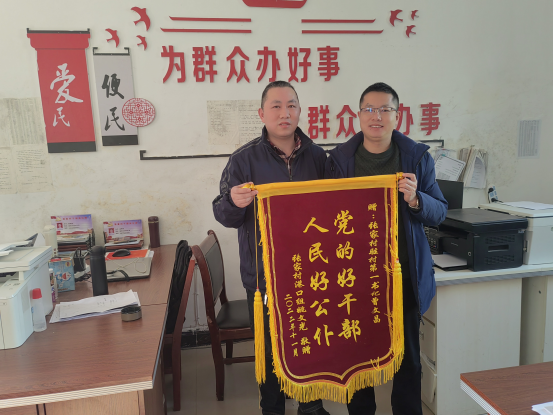 1月6日,宜丰县张家村脱贫户姚美祥老人的儿子姚文光来到村部,将一面印有“党的好干部、人民好公仆”的锦旗送到省林科院驻村工作队第一书记曾文昌手中,表达对驻村工作队帮扶的感激之情。