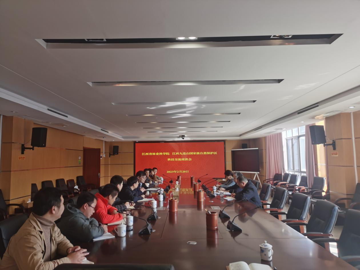 2月20日,江西九连山国家级自然保护区金志芳局长一行到省林科院,就进一步加强科技合作开展交流座谈,省林科院院长杨杰芳、副院长黄晓凤及省林科院野生动植物与自然保护地研究科技创新团队、森林生态科技创新团队、珍贵树种与森林提质增效团队的负责人及相关科技人员参加会议。