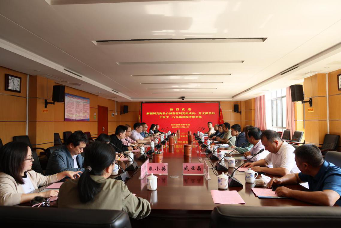10月24日,新疆克州阿克陶县自然资源局党组成员、党支部书记王世平一行10人到省林科院考察交流,院长杨杰芳,院总工程师雷小林陪同。