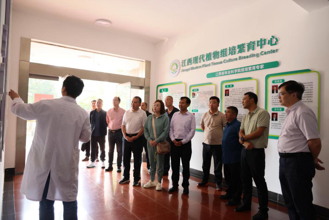 王世平一行人现场考察了国家山茶和油茶种质资源基因库、竹类国家林木种质资源库、城郊小微湿地群项目建设点、樟树(黄樟)种质资源收集圃、现代植物组培繁育中心、林业科技标本馆、国家林草局林产品检验检测中心(南昌)等科研试验基地、科研平台与科技成果推广展示平台,详细了解了江西的生态资源与林业科研产业发展情况。