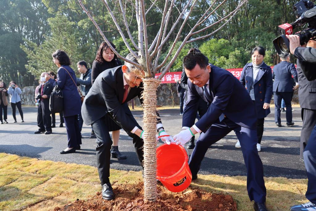 11月28日上午,江西省与日本岐阜县结好35周年纪念植树活动在江西省林科院举行。省政府副省长夏文勇、日本岐阜县政府副知事大森康宏出席并致辞;日本岐阜县议会副议长田中胜士,省政府副秘书长熊科平,省外办主任范勇、副主任胡志扬,省林业局二级巡视员李军,省林科院副院长龚春等出席;省林科院院长杨杰芳主持植树仪式。