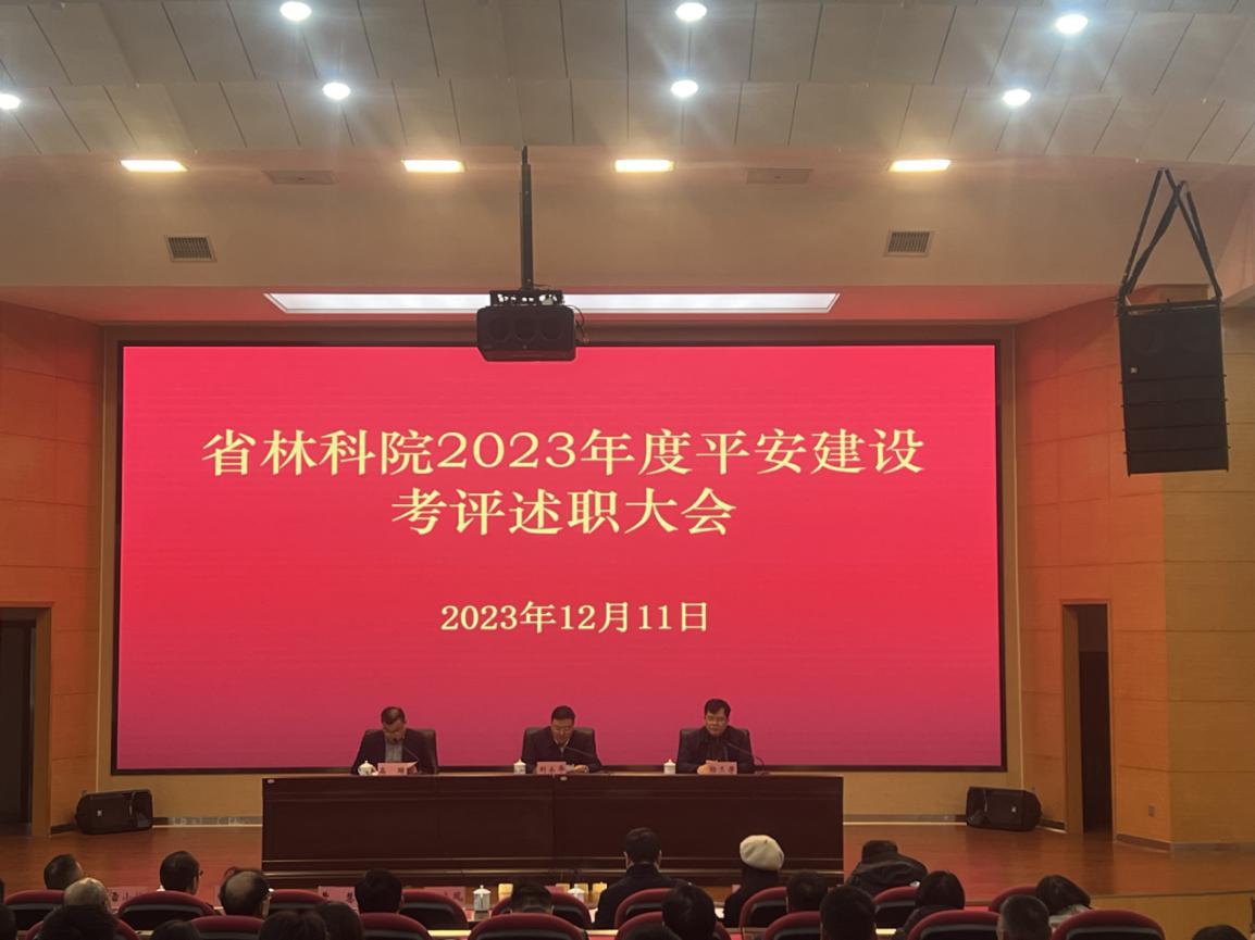12月11日,省林科院在创新大楼阶梯会议室召开2023年度平安建设考评述职大会。省平安建设第十现场考评组组长、省检察院一级巡视员刘永华,考评组成员付平清、罗羚、刘道明出席会议。院长杨杰芳出席会议并作平安建设述职报告。会议由院党委副书记高璜主持。在家院领导、总工程师、中层干部、干部职工代表共计150人参加会议。