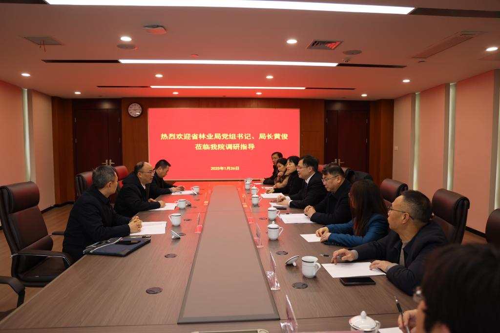 1月26日上午,在农历蛇年新春佳节来临之际,省林业局党组书记、局长黄俊率局办公室、科技处主要负责同志到省林科院走访慰问林业科技工作者,代表省林业局向省林科院林业科技人员致以新春祝福和节日问候。省林科院党委书记杨杰芳,党委副书记高璜,党委委员、副院长龚春、黄晓凤、黄慧及总工程师雷小林等陪同。