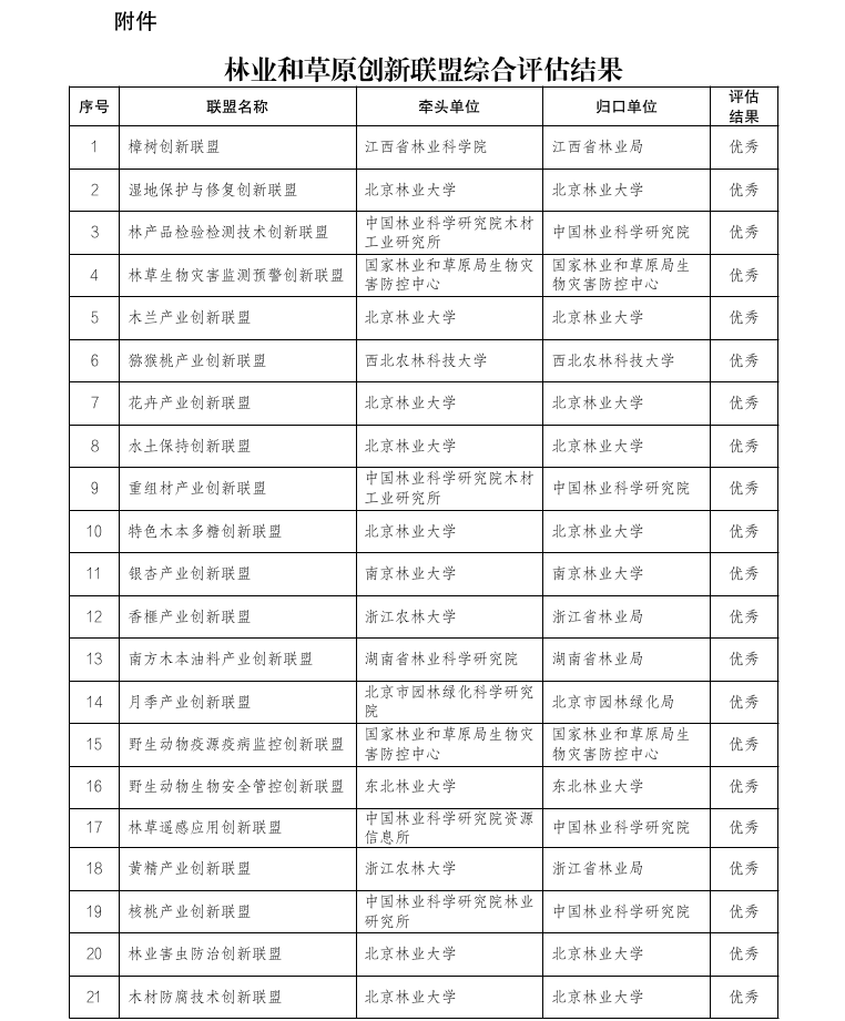 在近日公布的2024年度国家林业和草原局创新联盟综合评估结果中,樟树国家创新联盟凭借突出的创新成果和显著的示范效应,从全国两百余家林业创新联盟中脱颖而出,名列“优秀”等次第一。这一荣誉是对樟树国家创新联盟在林业创新领域努力与成就的高度认可。