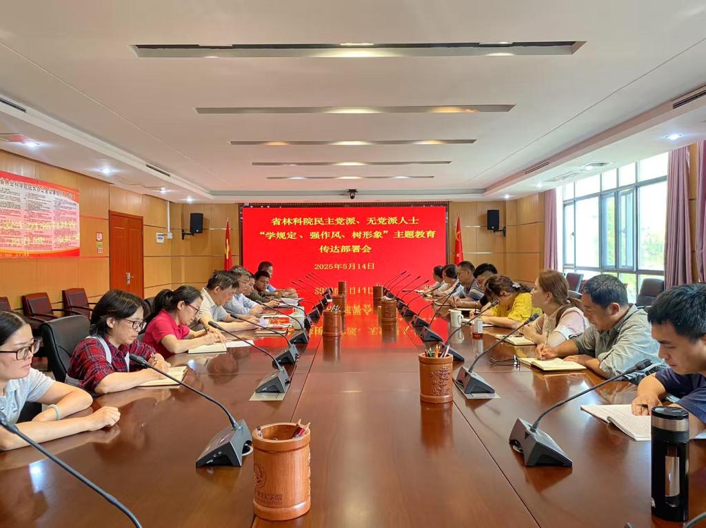 会议强调,在院各民主党派、无党派人士中开展“学规定、强作风、树形象”主题教育,是筑牢共同思想政治基础的必然要求、加强参政党建设的重要举措、发挥我国新型政党制度效能的有力保障。要深入学习研讨,深入学习习近平总书记关于加强党的作风建设的重要论述,持续贯彻落实中共中央八项规定及其实施细则精神;要弘扬优良传统,不断巩固团结奋斗的共同思想政治基础;要突出问题查摆,全面深入查找作风建设存在的问题;要抓好集中整治,列出清单、逐条专项制定整改措施;要加强制度建设,注重建章立制,做好整改落实“后半篇文章”;要提高政治站位,做好结合文章,强化支持保障,切实把主题教育谋划好、组织好、落实好,努力以作风建设新成效推动林业科技创新高质量发展。