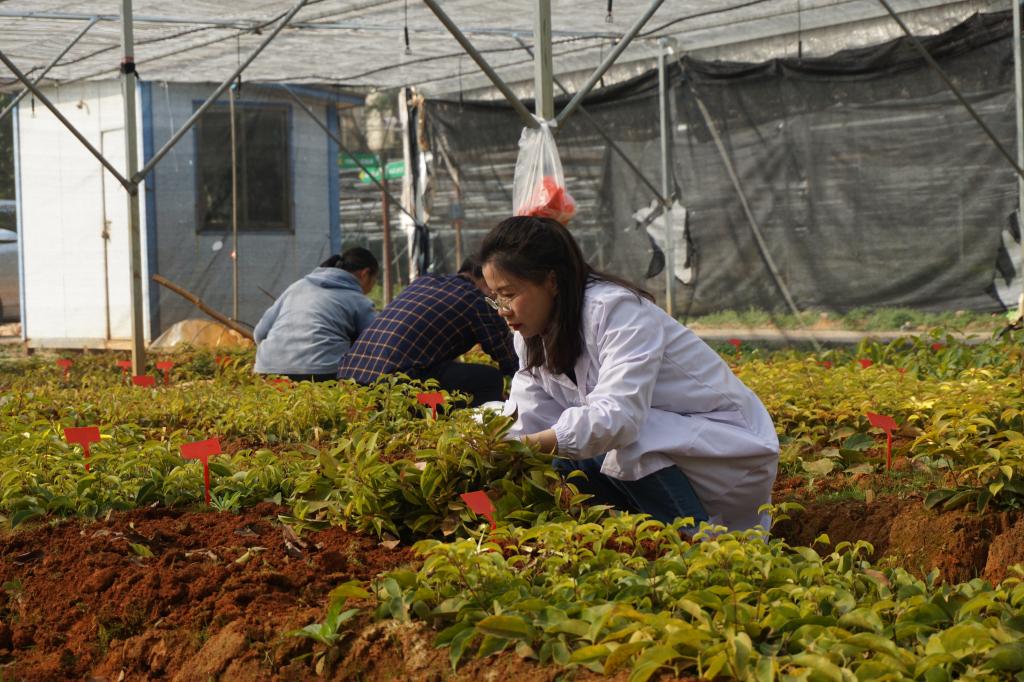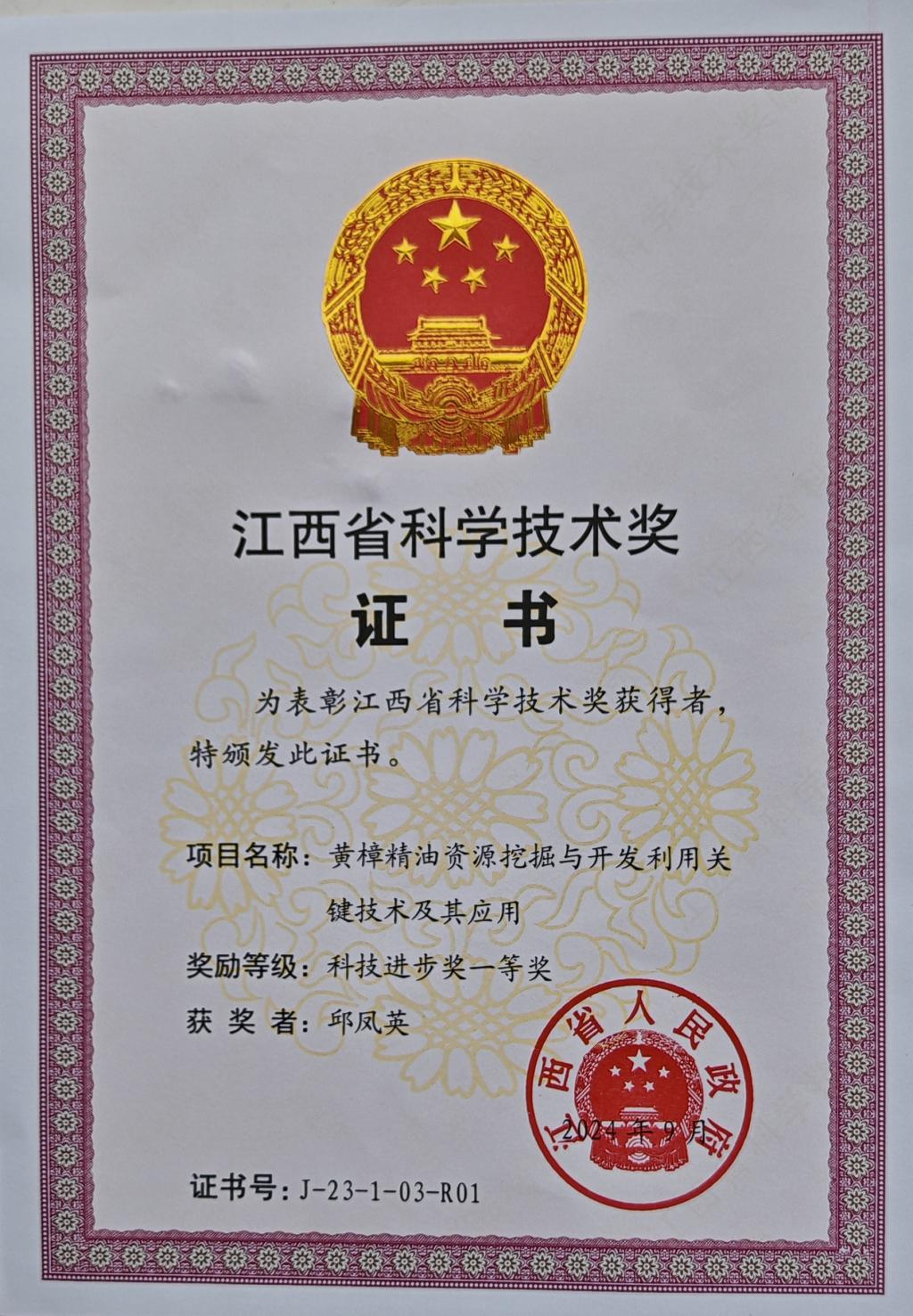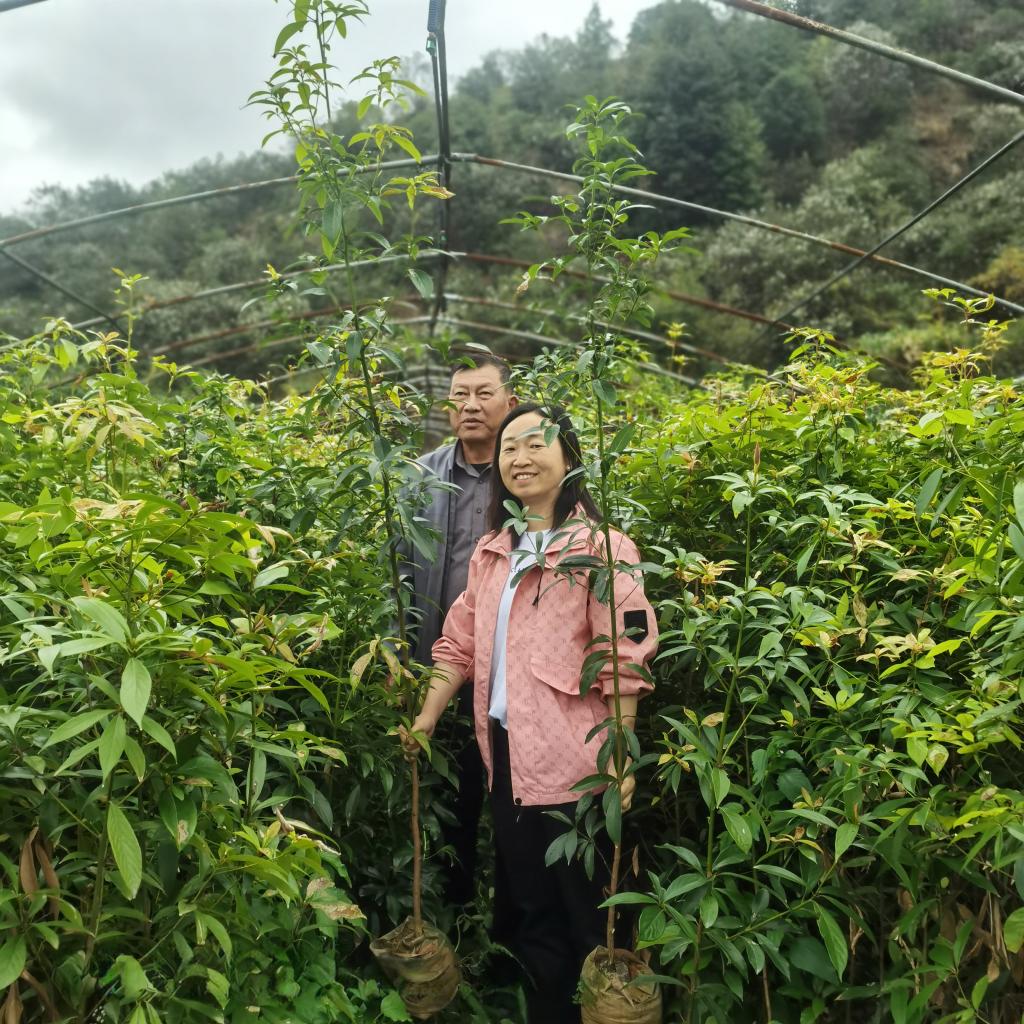 为选育出生产所需的高产、高品质的香料用樟树良种,始终坚守试验苗圃和实验室两个阵地,经过近十年的近千次检测和品种无性系化,最终选育出“黄樟赣芳2号”、“黄樟赣柠1号”、“黄樟赣柠2号”和“黄樟赣柠3号”等樟树油用良种,攻克了黄樟无性高效快繁技术,解决了樟树香料产业源头种质问题。