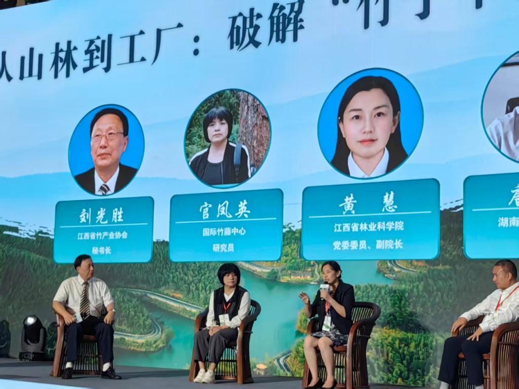 黄慧副院长受邀参加“从山林到工厂:破解‘竹子下山难’的产业链协同路径”议题讨论环节。她提出,破解“竹子下山难”应从系统性解决,她建议采用就地分解降低运输成本,同时加强初级原料的标准化和平台数字化建设从而推动破解“竹子下山”。该观点受到与会者的热烈赞同。