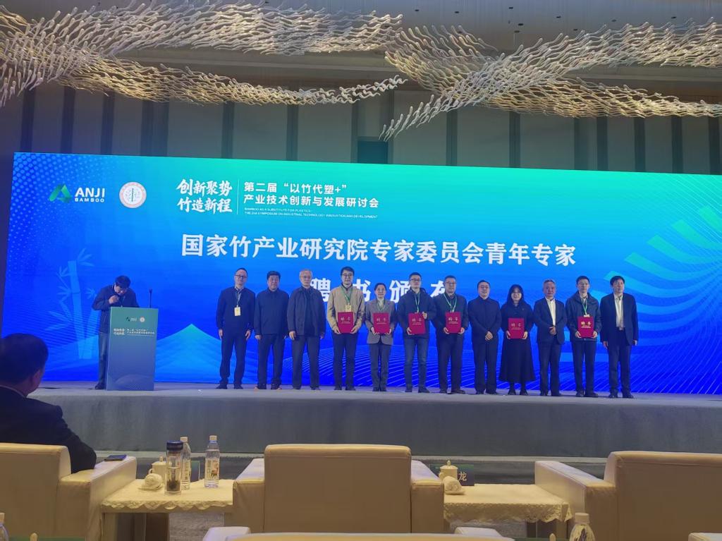 11月28日,第二届“以竹代塑+”产业技术创新与发展研讨会在浙江安吉隆重开幕。本次研讨会由国家竹产业研究院、中国林科院木工所等单位主办,以“创新聚势 竹造新程”为主题,汇聚了院士专家、行业精英、企业代表及政府相关部门负责人,通过政策解读、学术交流、产品展览、产销对接等多元形式,搭建起“以竹代塑”产业高质量发展的国家级交流平台。研讨会上,中国工程院、重庆大学刘汉龙院士以“从自然到建筑,生物建造低碳转型新路径”为题,从跨界角度对竹产业发展提出创新思路;国家竹产业研究院于文吉院长以“发展新质生产力推动竹产业高质量发展”为题,突出了科技创新与产业融合发展的重要性。省林科院副院长黄慧及林产工业所贺磊研究员、胡玉安研究员共同参加了此次会议。