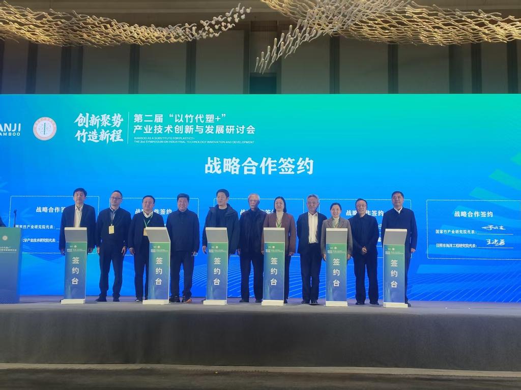 会上,省林科院与广西林科院、湖北林科院等5家单位分别与国家竹产业研究院签订战略合作协议,黄慧同时受聘为国家竹产业研究院专家委员会青年专家。此次签订战略合作,将整合省林科院与国家竹产业研究院科技人才和研究力量,聚焦竹产业高质量发展建设和双碳战略,双方各自发挥资源优势,共同开展竹材利用技术与装备开发,联合申报科研项目和成果,联合承办相关国际国内重要学术产业会议。通过双方的合作,将为省林科院推动竹产业科技创新和产业创新注入新活力,为关键技术的转化落地提供新思路。