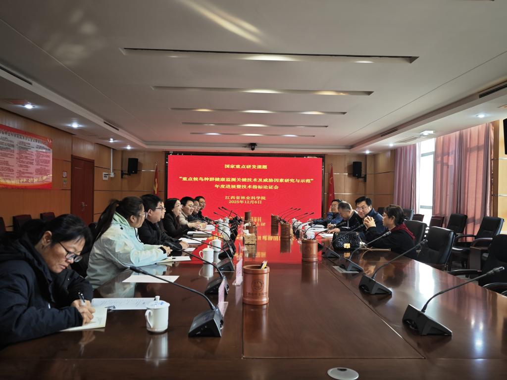2025年12月6日,江西省林科院主持的国家重点研发计划课题“重点候鸟种群健康监测关键技术及威胁因素研究与示范”年度进展暨技术指标论证会在南昌顺利召开。会议邀请了西北大学李保国教授、北京师范大学张正旺教授、东北师范大学冯江教授等7位国内知名专家组成论证专家组,对课题年度进展和技术指标进行评议指导。课题组骨干成员10余人参加会议。课题负责人、林科院院副院长黄晓凤研究员主持会议