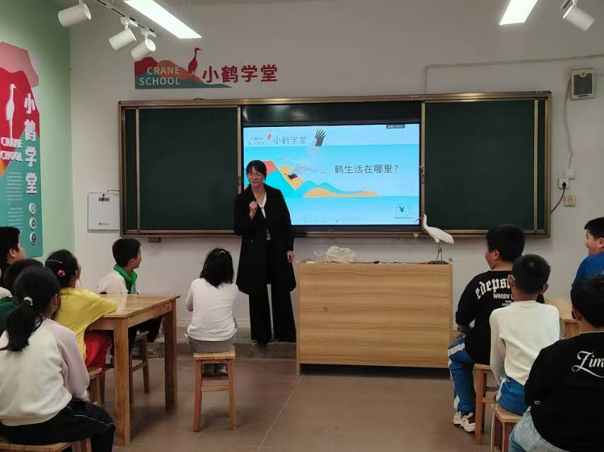 本学期小鹤学堂课程内容丰富且条理清晰,围绕鹤类与湿地两大核心主题展开,先后设置“鹤类知多少”“鹤为什么会飞”“鹤生活在哪里”“鹤类的迁徙”“鹤类的繁殖”等科普内容,同时融入“什么是湿地”“我们的家园鄱阳湖湿地”相关知识,让孩子们系统地认识鹤类的生存习性,以及湿地生态系统对鹤类的重要意义。