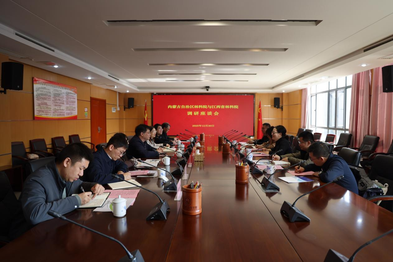 内蒙古自治区林业科学研究院科研与信息管理处、荒漠化所;省林科院行办、科管处、产业处、生态所、植物园、赣中分院相关负责同志参加考察与座谈。(院行办供稿)