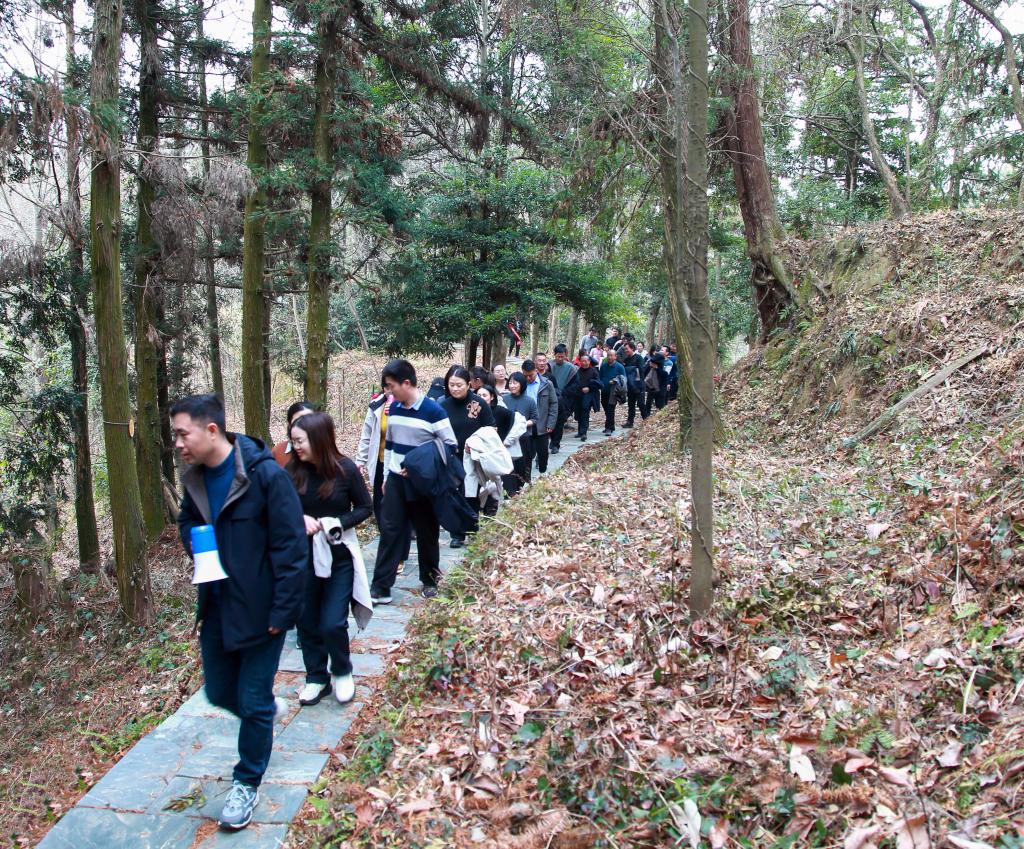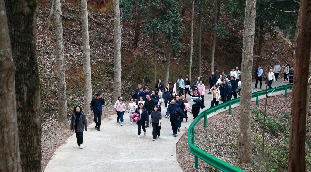 活动当天,阳光明媚,春风拂面,参加活动的职工们身着整齐的运动装,精神抖擞地齐聚在活动起点,活动现场气氛热烈。随着院党委书记杨杰芳一声指令,健步行活动正式拉开帷幕。本次健步行路线全长约3公里,道路曲折蜿蜒,阳光透过树梢洒落,大家沿着挂着红飘带的游步道有序前行,有的结伴而行轻松交谈,有的步伐矫健恣意飞扬,有的互相扶持和谐美好。时而关注脚下山路,时而停下脚步欣赏园内的木兰园、槭树园、珍稀濒危树种园、银杏及桂花基因库等各类植物专类园区,活动结束之余,大家仍觉得意犹未尽......