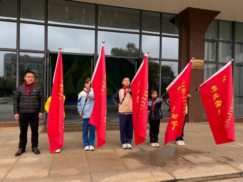 活动开始,隆重的授旗仪式在院标本馆门口举行。院机关党委专职副书记肖相元为少先队员代表授“科技强国中队”队旗,鲜艳的队旗迎风招展,队员们庄重敬礼,满含对科学探索的热忱与期待。院子弟学校选派四年级20余名少先队员参加授旗仪式并接受队旗。