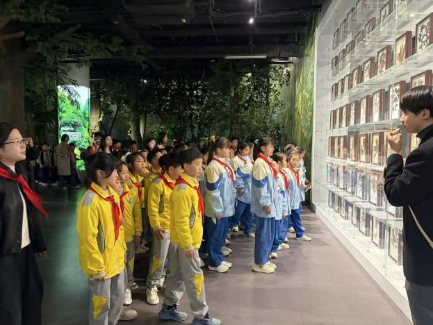 授旗仪式圆满结束后,队员们在讲解员的带领下,走进林业科技标本馆,近距离观察了各种动植物标本,感受森林生态系统的神奇与奥妙。接着,队员们前往国家山茶种质基因库,深入了解了山茶种质资源、基因保存技术及其生态价值。随后,他们来到竹类国家林木种质资源库,探索竹类资源的多样性和种质创新应用。最后,队员们漫步至天鹅湖,观察鸟类的生活习性,在轻松的氛围中分享学习心得,为整个活动画上了圆满的句号。