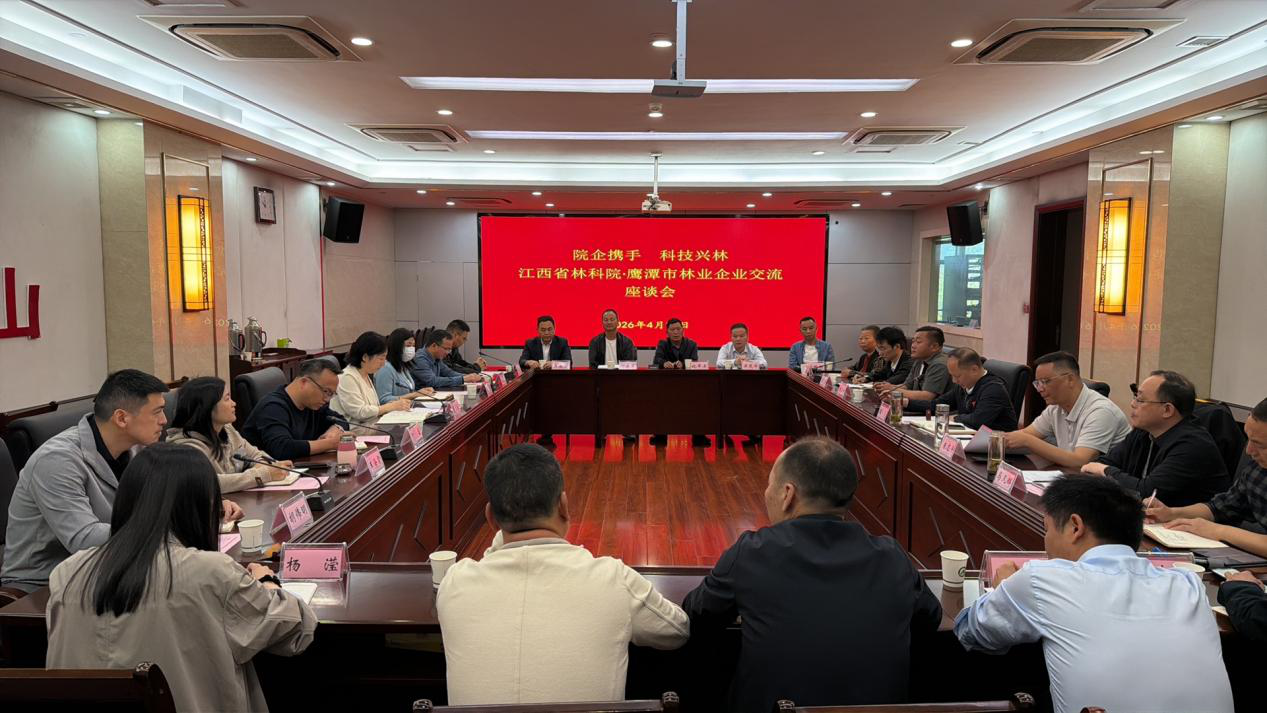 上午,院企合作座谈会在鹰潭市林业局召开。龚春院长介绍了省林科院学科布局、科研成果与技术服务能力,各领域专家分别推介竹木加工、林下经济、森林药材、毛竹种植等方向的成熟技术与转化案例。参会企业逐一汇报核心技术需求,双方围绕技术攻关、基地共建、成果转化等事项深入交流、精准对接,达成多项初步合作意向。