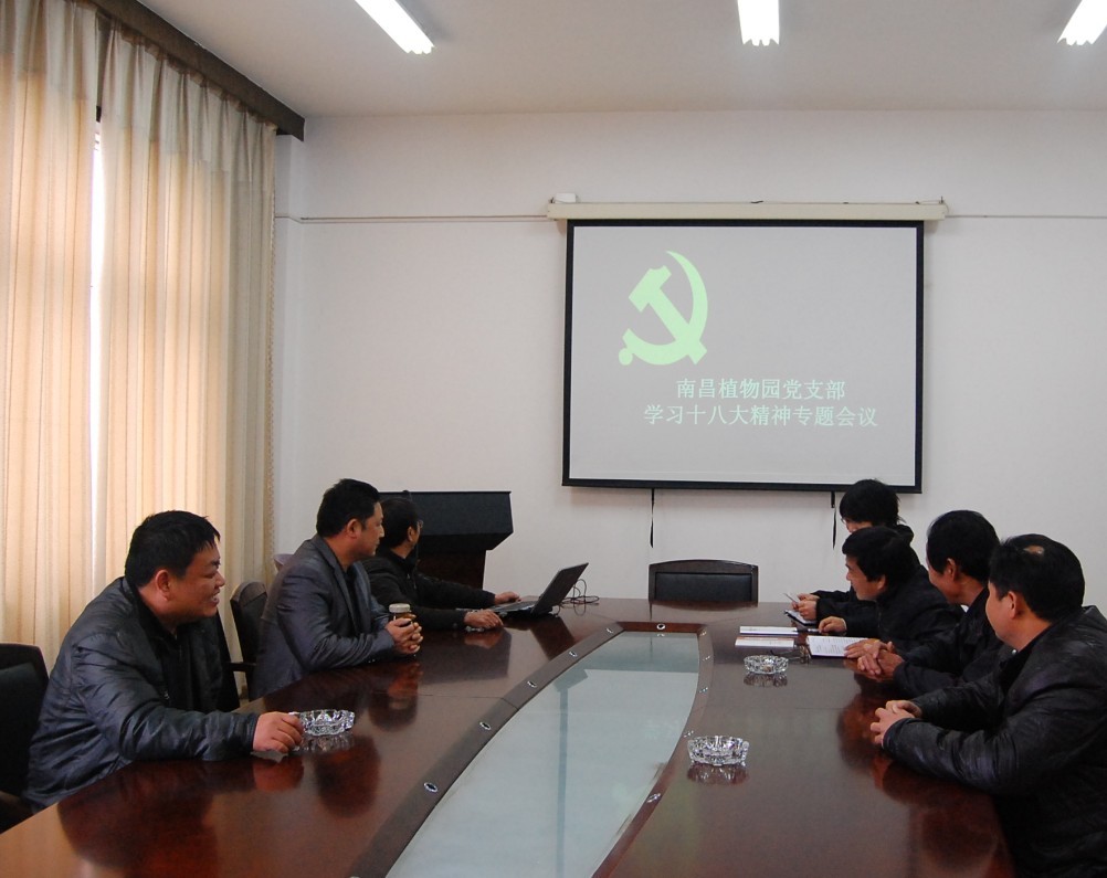 11月29日下午,南昌植物园党支部在综合楼二楼会议室召开会议,专题学习党的十八精神,研究党建工作。