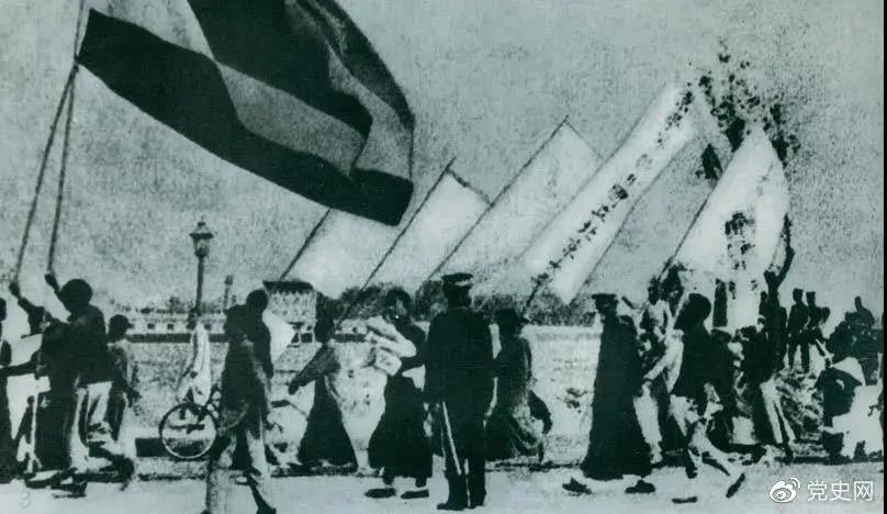 1919年5月4日,北京爆发学生反帝爱国运动。这是北京大学学生的示威游行队伍。