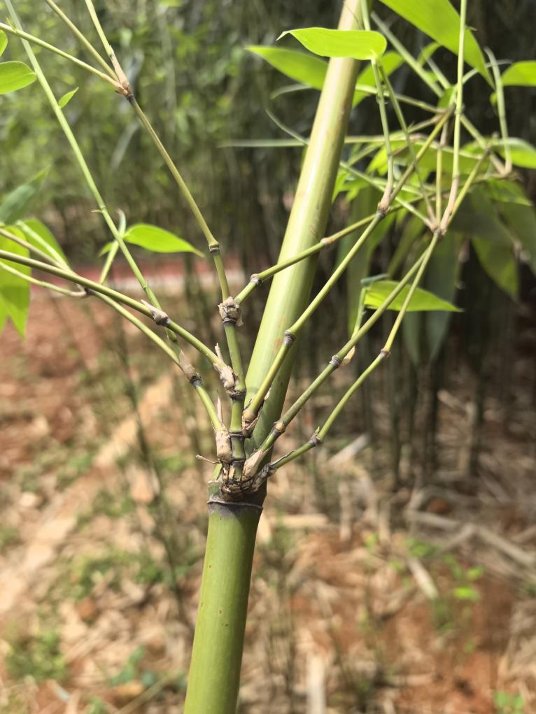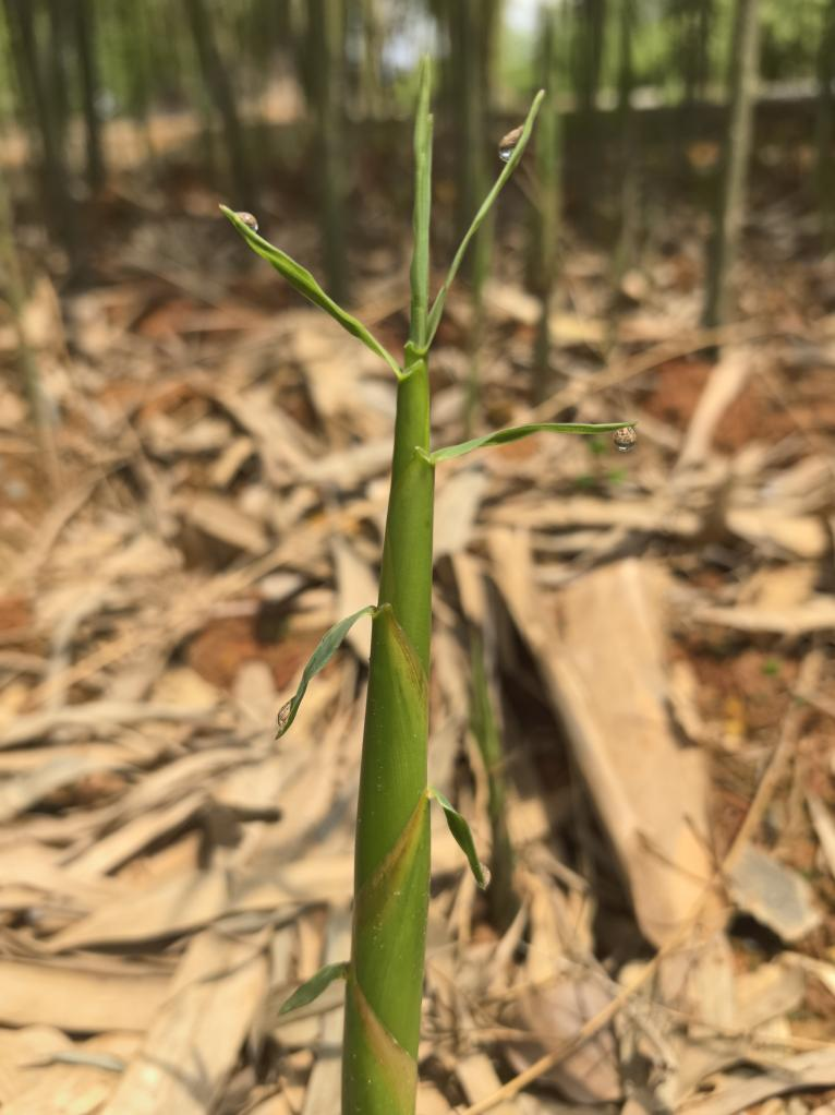 本变种于苦竹之处别在于箨鞘背部无毛,被薄白粉并很快脱落,又仅箨鞘基部生有白色脱落性的短纤毛,叶舌高3~4mm等特征于原变种不同。笋期5月。
