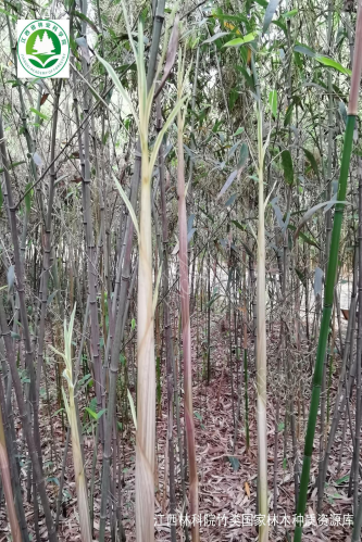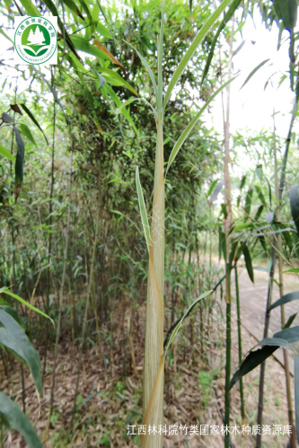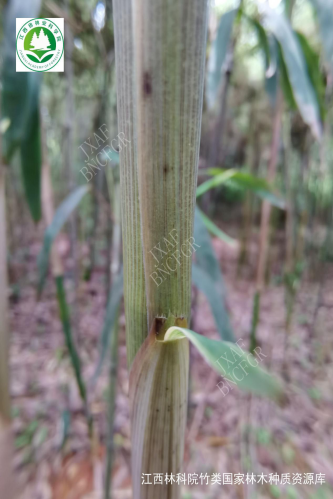 秆高达4m,直径3-4cm,新秆微被白粉,老秆灰绿色,箨鞘背面乳白色或带黄绿色,有宽窄不等的紫色纵条纹和稀疏的褐色小斑点,背部光滑无毛,无白粉,边缘生纤毛。产河南、江苏、浙江。笋用和观赏竹种。